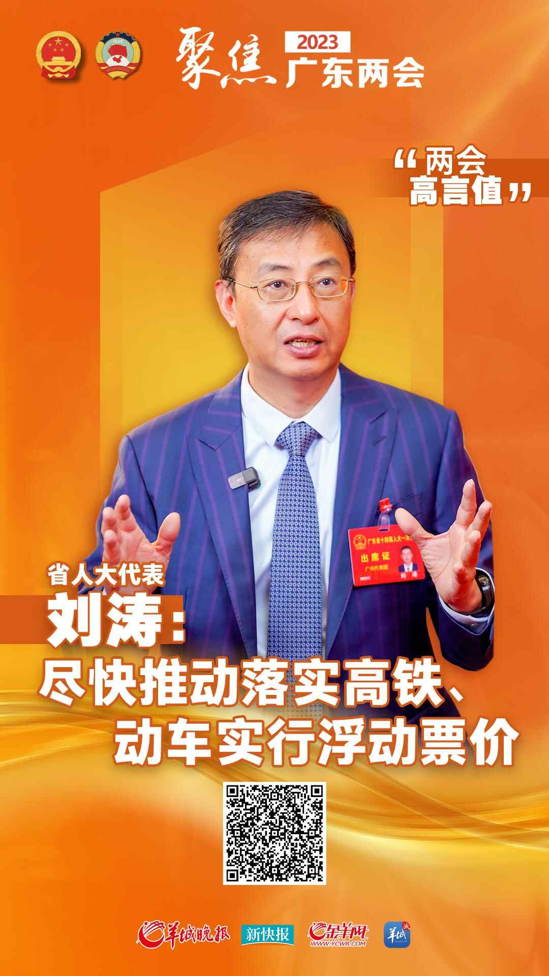 对此,刘涛建议省相关部门协调铁路等部门,尽快推动落实高铁、动车浮动票价制度,进一步优化定价标准,增加省内、省外往返线路优惠时间与路段,建立灵活的定价机制,为人民群众在广东省内及往返广东提供更加经济、便捷的高铁、动车服务。