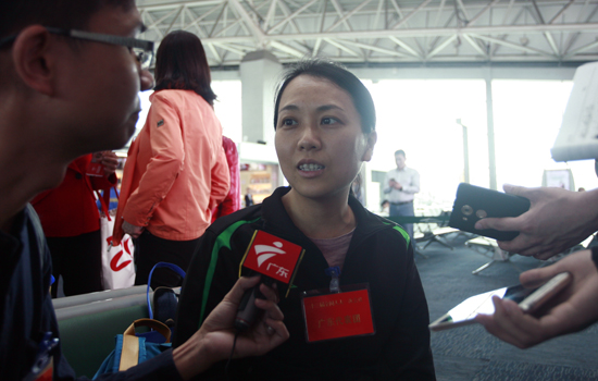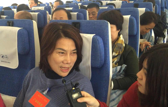 全国人大代表陈海仪在机场候机区接受媒体采访
