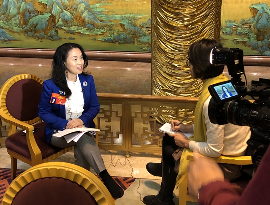 全国人大代表卢馨接受媒体采访(郭文航摄)