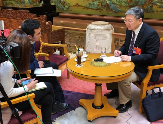 全国人大代表李清泉接受媒体采访(郭文航摄)